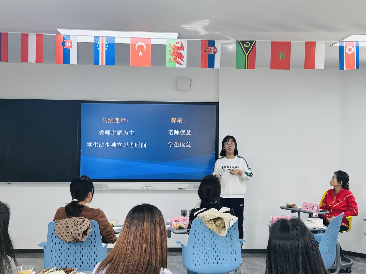 9月24日,教学沙龙第一期——教师教学午餐沙龙活动,在金沙官网国际教育学院201教室举办。本期活动围绕课堂教学改革——“对分课堂”展开,邀请获得第三届高校教师教学创新大赛省赛二等奖的王瑞、获得第四届高校教师教学创新大赛省赛三等奖的叶雪及团队成员朱娇、庞馨竹四位教师担任主讲,来自不同学科专业的教师围坐在一起,共享午餐,共话教改。