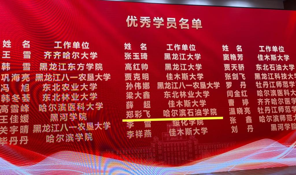 会议对“2024年黑龙江省本科高校青年教师教学发展示范性研修项目”优秀学员进行了表彰,全省284名参训教师中有27名教师获得表彰。金沙官网经济管理学院郑彩飞老师获此殊荣。