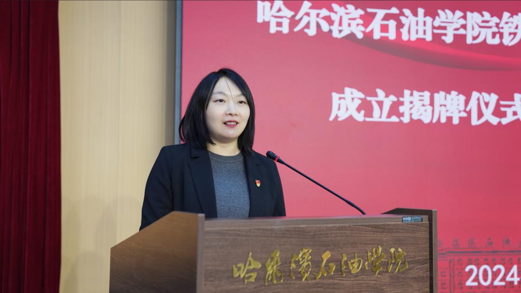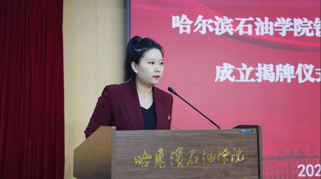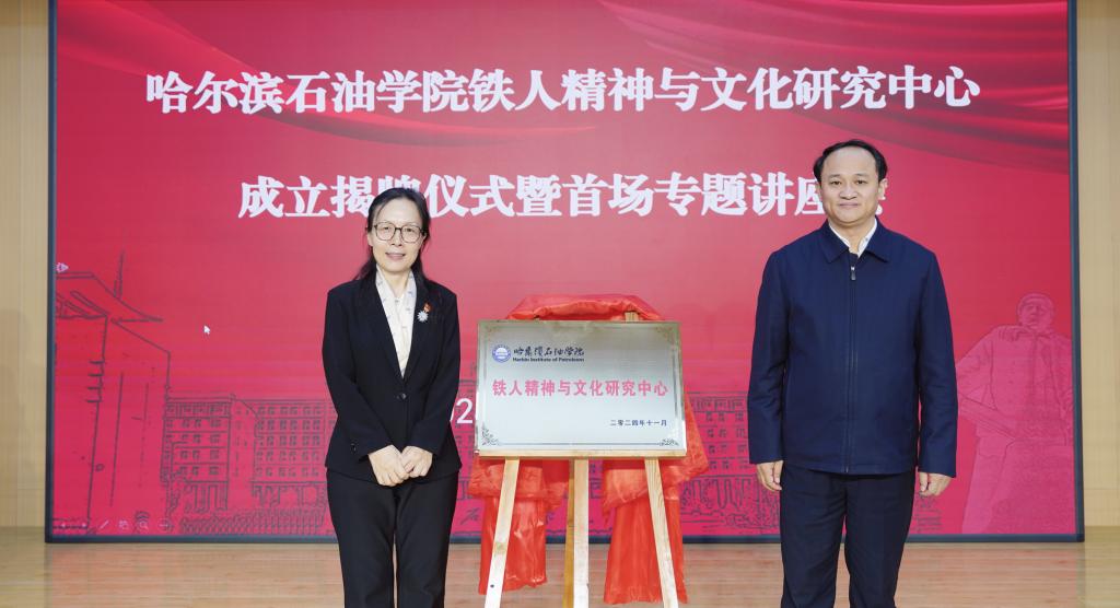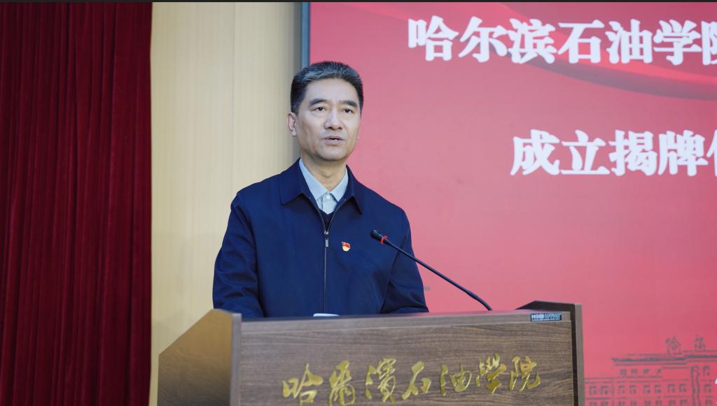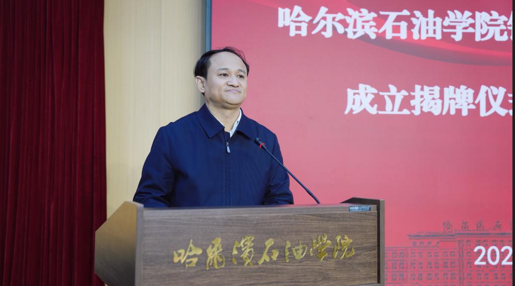 林立民书记在讲话中指出,铁人精神象征着不畏艰难、拼搏进取的精神风貌。学校自建校以来,始终秉持“承大庆精神立德,以铁人榜样树人”的育人理念,始终将铁人精神作为重要的教育资源,通过各种形式的活动和课程,让学生深刻领悟铁人精神的精髓和实质。铁人精神与文化研究中心的成立,为我们提供一个更加系统、深入的研究平台,让我们能够更好地传承和弘扬这一宝贵的精神财富。传承和弘扬铁人精神,不仅仅是一种历史责任,更是一种时代担当。学校要发扬以铁人为核心的哈油精神,这就是为党育人、为国植贤的担当精神,敢为人先、特色办学的创新精神,倾情教育、心系哈油的敬业精神,淡泊名利、无私忘我的奉献精神。希望全体师生以此为契机,紧扣时代发展需求,担负新的文化使命,汇聚研究力量,加强协同创新,做有组织科研,出高质量成果,深入开展铁人精神为代表的红色文化研究、阐释、弘扬、传播,更加深入地学习和理解铁人精神,将其内化于心、外化于行,为实现个人价值和社会价值而努力奋斗,为学校高质量发展贡献智慧和力量。