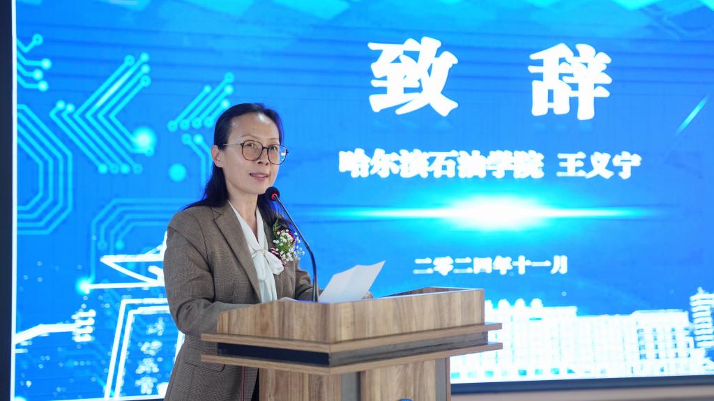王义宁校长在仪式上致辞。她表示,研究所的成立将有效整合金沙官网良好的教学和科研资源,推进已有科研成果在产业中运用、转移、转化,不仅能够提升金沙官网的学科专业建设水平,更将成为人才培养的重要孵化器,助力高质量应用型人才不断涌现。王校长还指出,成立研究所是深化“产教融合、科创融合”工作的重要举措,旨在通过科研与产业、教育的深度融合,推动金沙官网科研工作的快速发展,同时也为学校实现跨越式飞速发展奠定坚实的科研基础,为龙江产业发展提供有力的技术支撑和成果转化,为产业升级注入新的活力。