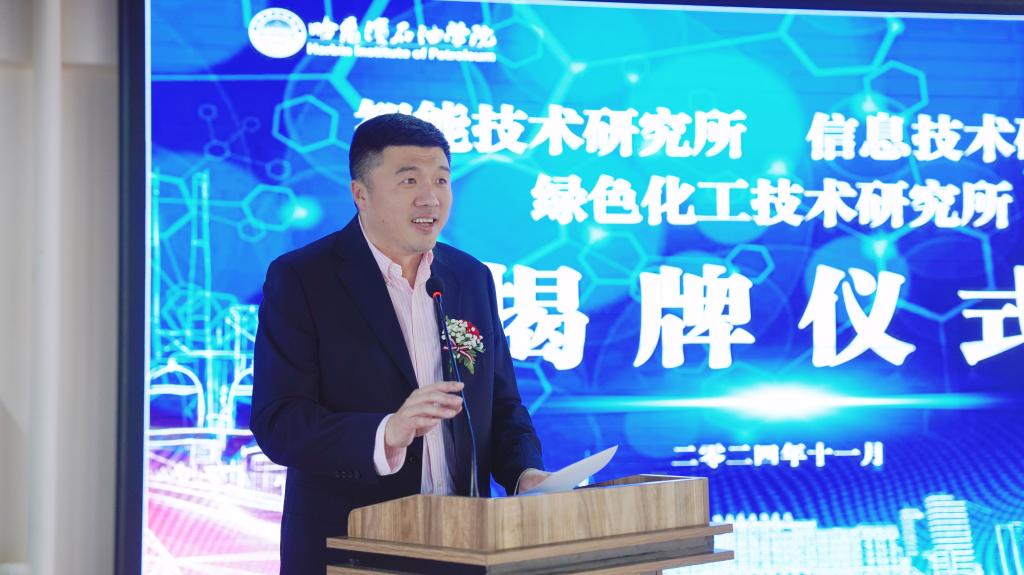 仪式最后,副校长冯研在致结束语时指出,随着科技的日新月异,信息技术、智能制造和绿色化工等领域已经成为推动社会进步和产业升级的重要力量。今天的揭牌仪式不仅是对三个研究所成立的庆祝,也标志着金沙官网在“科创融合、产教融合”的道路上迈出了坚实的一步。金沙官网将以此为契机,进一步加强科研团队建设,提升科研创新能力,同时也为学校申报硕士点打下良好的基础。