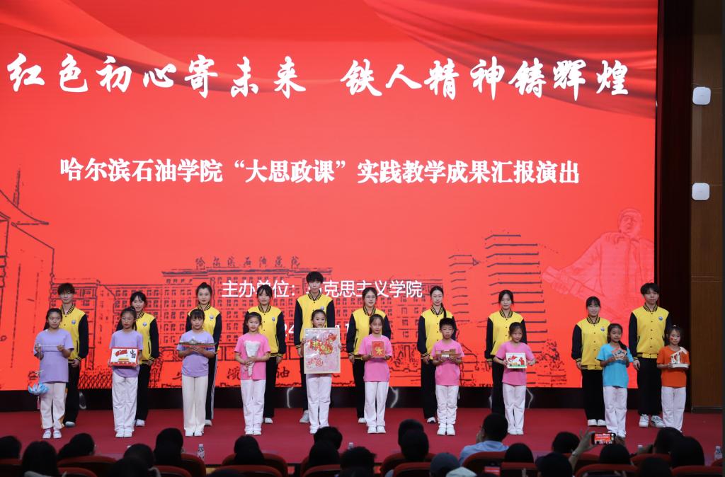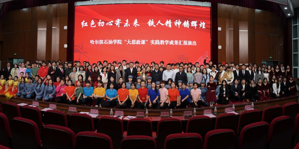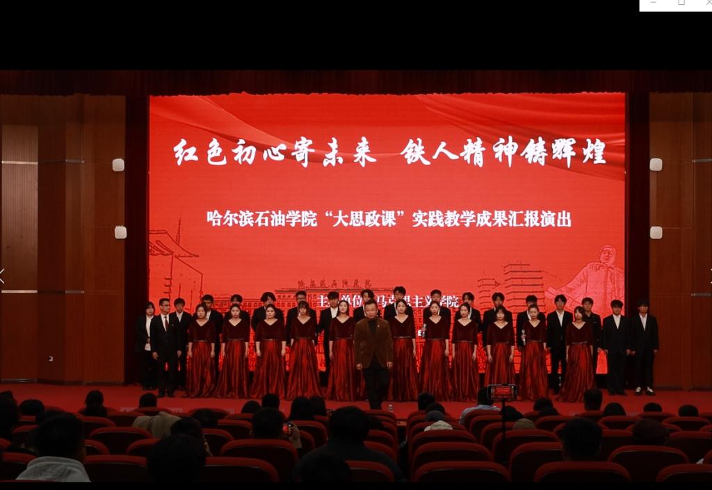 汇报演出结束后,马克思主义学院教师为师生朗诵《铁人赞颂》,艺术与教育学院学生共同演唱了孔维克老师和刘雁春老师共同创作的歌曲《铁人精神铸辉煌》,用真情实感和言语歌声表达了对铁人王进喜的追思与缅怀,弘扬铁人精神,踏着铁人脚步,传承铁人精神,赓续红色基因,在青年学子的心中根植起爱党爱国爱家乡的深厚情怀。