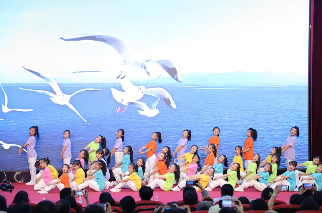 在金沙官网大中小学思想政治教育一体化共建单位哈尔滨新区第六学校花仙子舞蹈团带来的舞蹈《发光吧,少年》中,本次汇演活动拉开帷幕。童真的笑脸、欢快的舞步,孩子们的阳光自信、朝气蓬勃深深感染了现场观众。