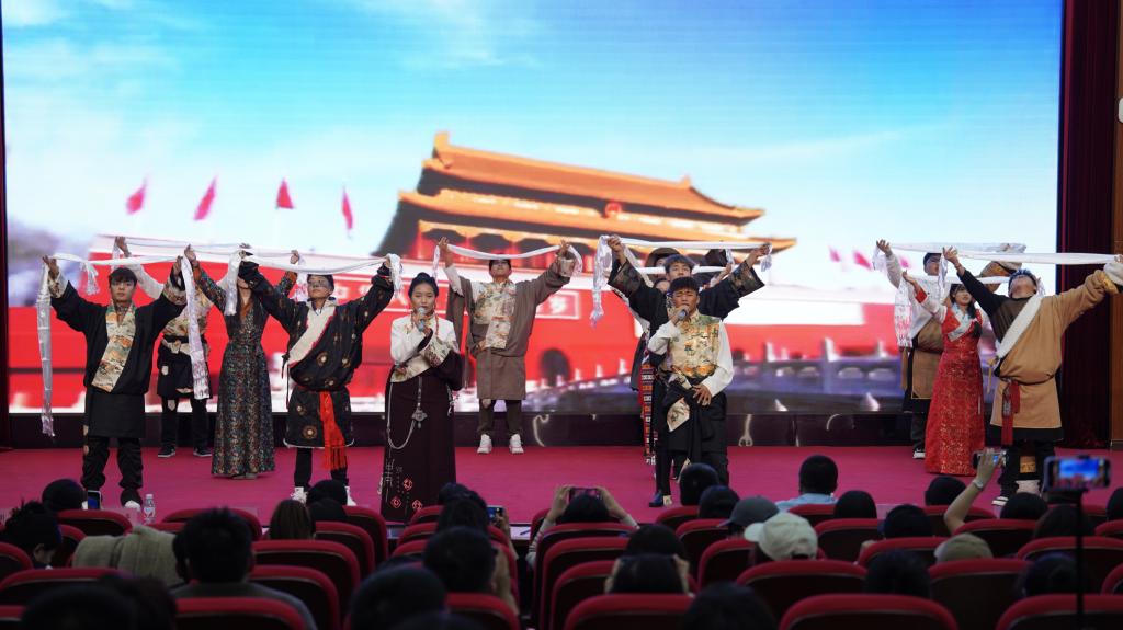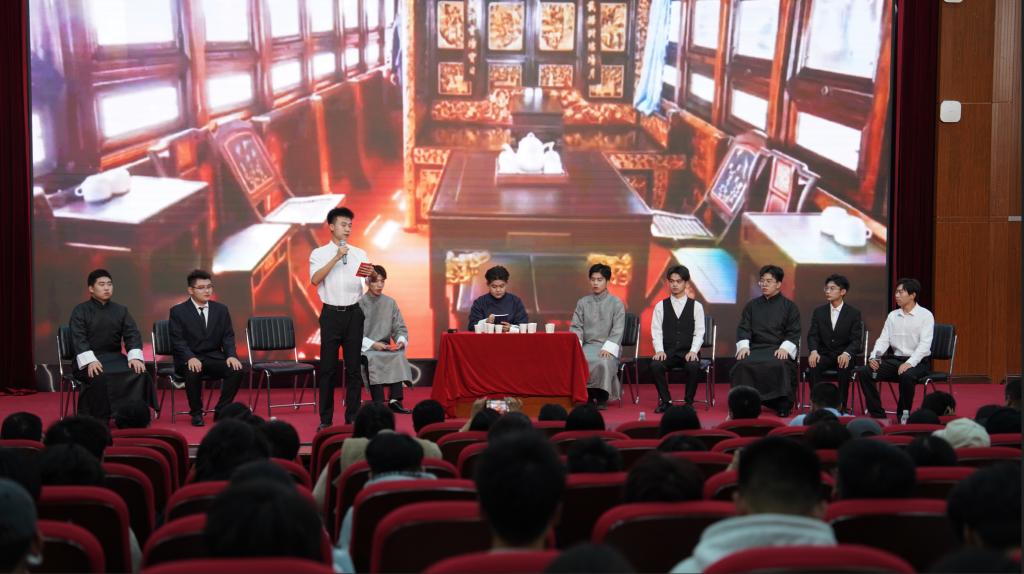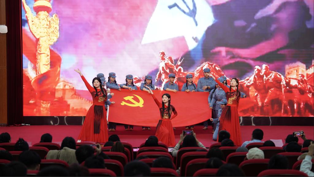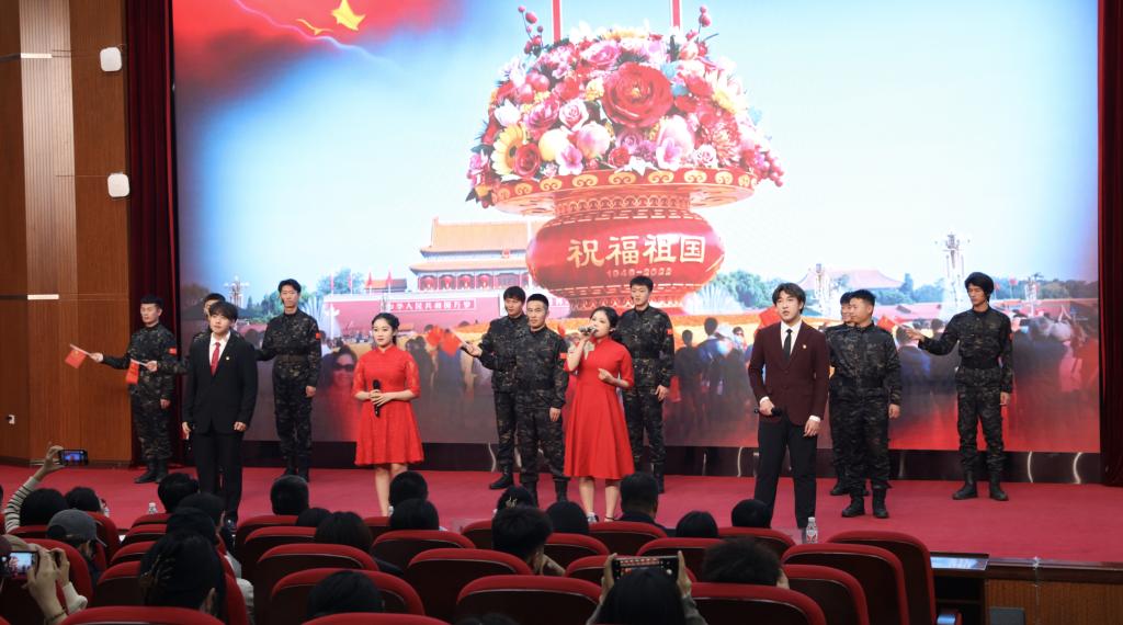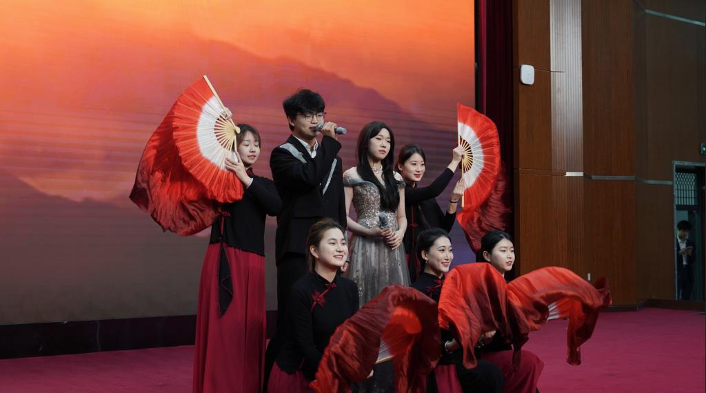 整场汇演精彩不断,情景剧《红船初心》再现中共一大南湖启航这一历史瞬间;朗诵《一封家书——致牺牲的岸英》道出“苟利国家生死以”的报国情怀;情景朗诵《青年何谓青年何为》讴歌时代新人奔赴中华民族伟大复兴的决心;藏族同学表演的歌舞《再唱山歌给党听》展现了各族人民团结奋进、共创美好生活的生动画面。参演学生以一幕幕逼真感人的故事追忆为承载,将深沉真挚的家国情怀演绎得淋漓尽致;以一段段催人奋进的歌舞表演为依托,将祖国蓬勃发展的美丽画卷生动展现。