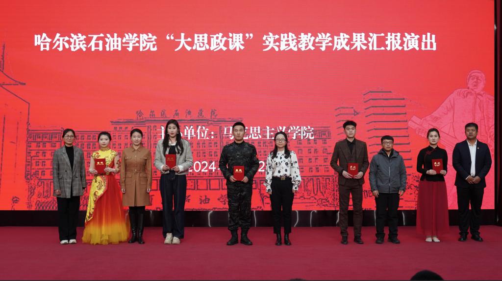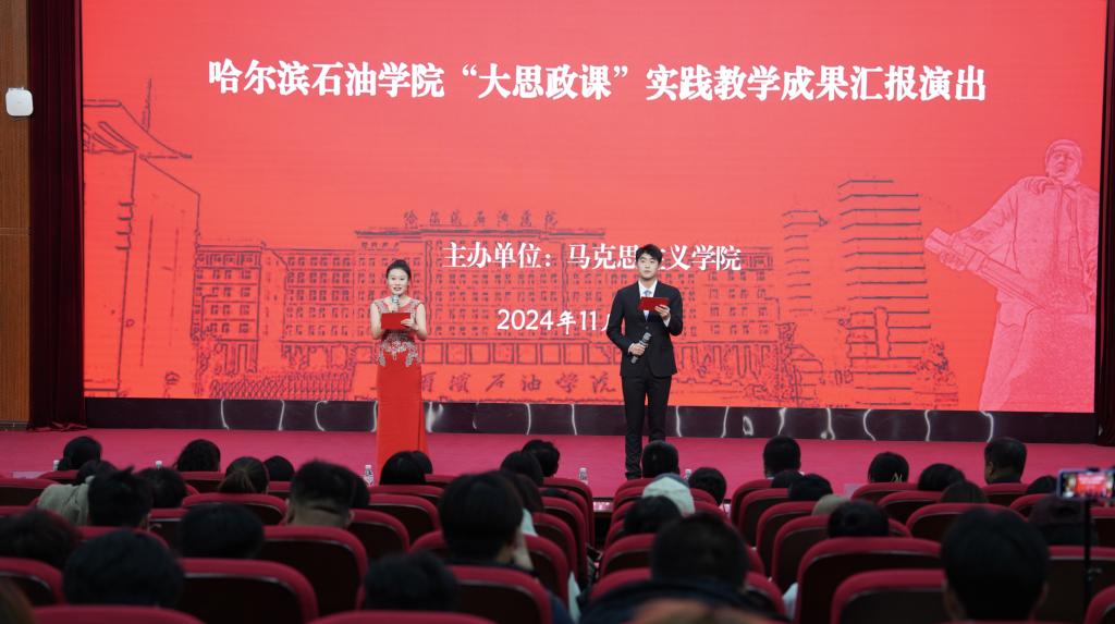 副校长冯研为汇演活动致辞。冯研副校长在致辞中表示,马克思主义学院依托“金沙检测线路js69铁人精神与文化研究中心”,围绕学校“承大庆精神立德 以铁人榜样树人”的育人特色,创新实践教学形式,致力于打造一堂别开生面的艺术思政大课,用丰富多彩的艺术表现形式,引导广大青年学生赓续红色基因,汲取奋进力量,听党话,跟党走,立志为实现中国式现代化贡献青春力量。