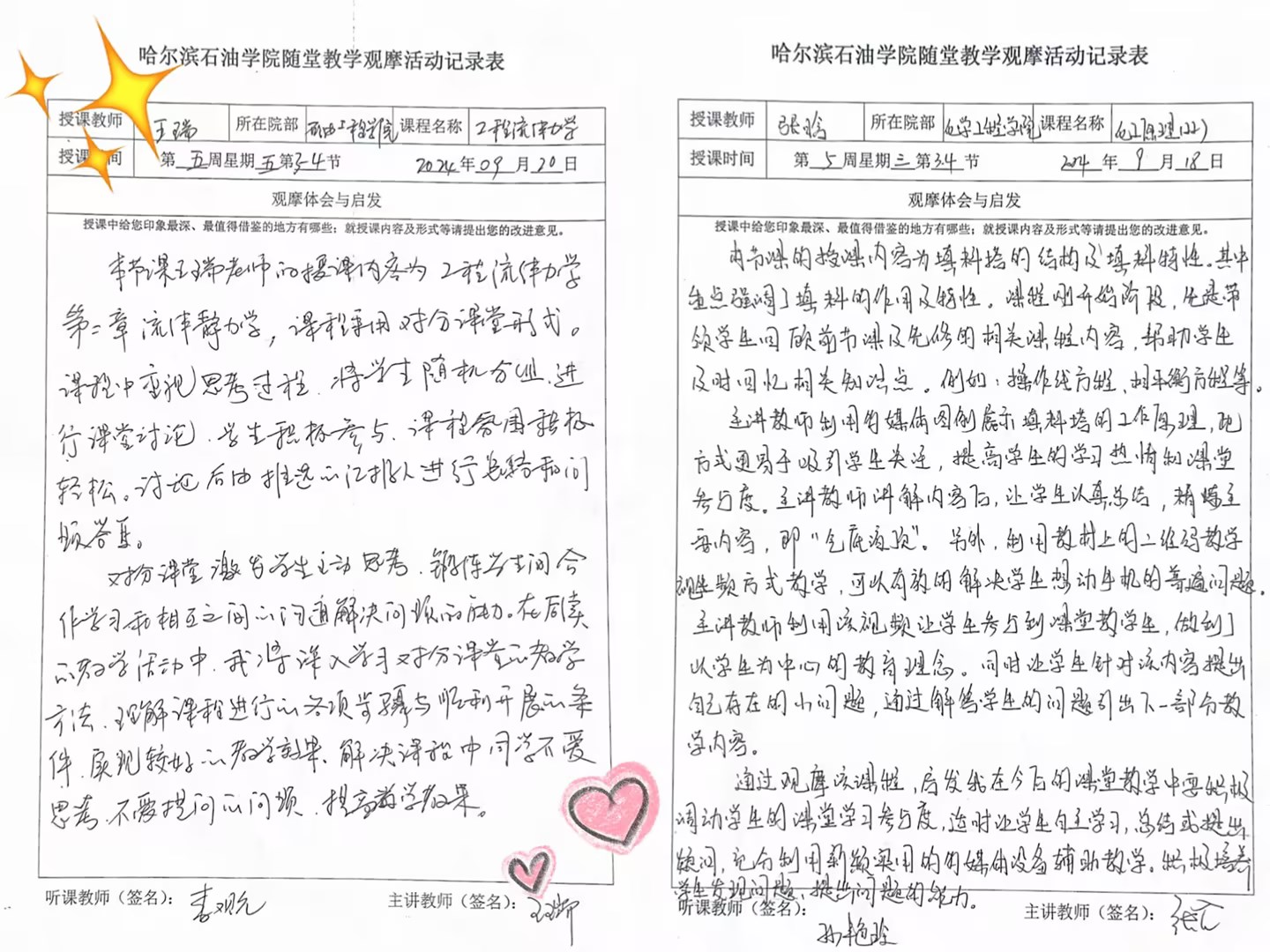 教师教学发展中心作为本次活动的组织单位,事前充分宣传动员,发布了活动通知、示范教师简介及课程安排,同时为了保证示范教师的课堂秩序,每周做好下一周的观摩人次情况统计。活动结束后,参加观摩的教师提交了记录表,对每位教师的记录表进行了认真的查阅,绝大多数教师都能够认真听课,认真思考,记录示范教师课堂上的每个授课环节及课堂管理的方式方法,包括仪容仪表、语音语调、课堂互动、教学方法的运用、板书、ppt的制作、课程思政等。参加观摩的教师普遍反映,通过观摩活动,他们感受到了课堂教学改革与创新的魅力,并表示出了浓厚的实践兴趣。
