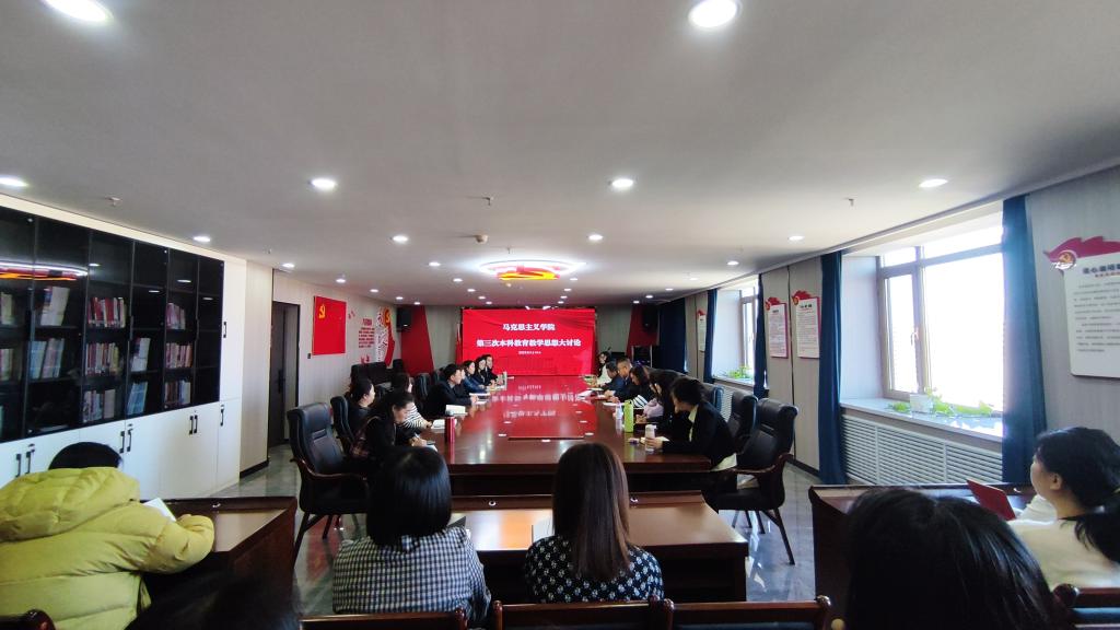 2025年3月14日,金沙官网马克思主义学院举办第三次本科教育教学思想大讨论活动。马克思主义学院全体教师参加活动。马克思主义学院副院长王瑞主持讨论活动。