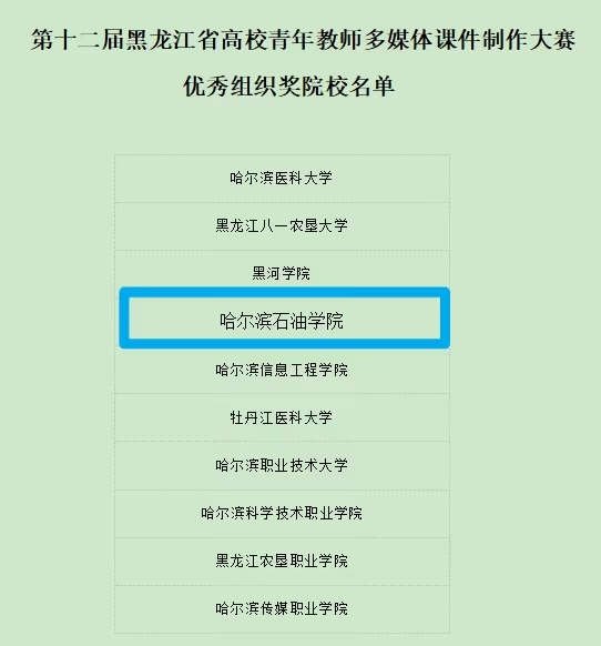 同时,学校荣获“第十二届黑龙江省高校青年教师多媒体课件制作大赛优秀组织奖”,这是对金沙官网教师信息化教学能力和学校组织工作的充分肯定。