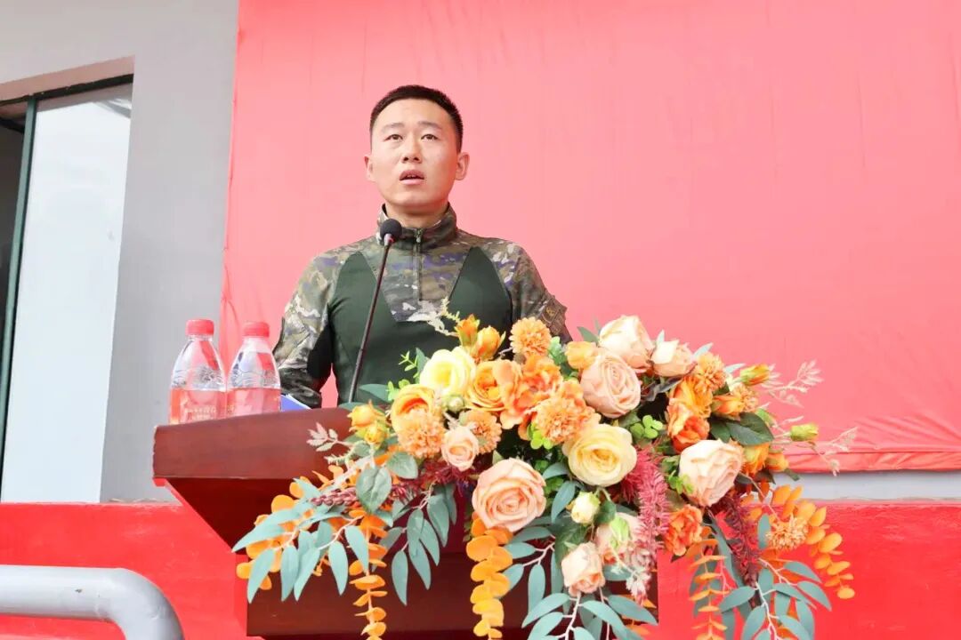 教官代表副班长迟博庭发言。他表示军训是大学第一课,也是国家规定必修课,能增强国防观念、磨练意志、培养纪律意识与集体精神。全体承训教官承诺将严守教官职责以及学校各项规章制度,以良好的军人形象、过硬的军事本领、饱满的工作热情和高度负责的态度科学组训、文明施训,确保训练质量和学生安全。