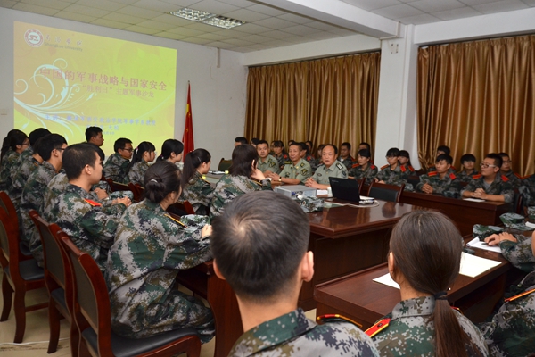 2015年9月9日,best365召开中国军事战略与国家安全主题座谈会。解放军西安政治学院军事学系教授、2015级新生军训团团长刘京生大校,军训团副团长庄超中校,军训团副团长伊明强少校出席本次活动。武装部部长、军训团政委石启英主持座谈。