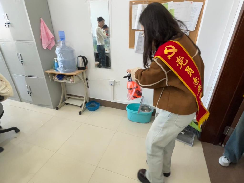 活动中,学生党员们分工明确,手持消毒喷壶,按照规范的消杀流程,对办公室和教室的桌椅、文件柜、门窗等进行了全方位的消毒处理。每一个角落、每一处把手,都不放过,确保消毒无死角。在大家的努力下,办公室和教室空气得到了有效净化,大家纷纷表示将继续密切关注病毒动态,严格落实各项防控措施,定期组织开展消杀工作,为师生创造一个安全、健康的工作和学习环境。
