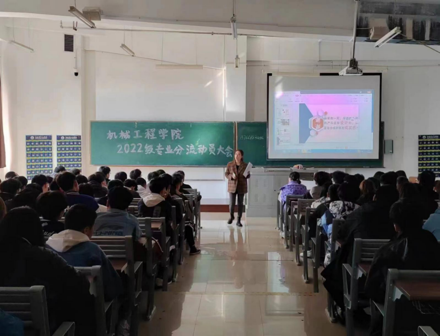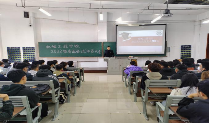 为切实做好我院大类招生专业分流,加强2022级学生对我院各专业的认知,提升培养人才质量。大会旨在帮助同学们深入了解即将选择的各个专业的具体情况,科学引导同学们在专业分流选择时,尽可能地结合自身兴趣和成长成才规划做出合理的专业方向选择和职业规划定位。4月23日下午,机械工程学院在主教401、404展开2022级专业分流动员大会。出席会议的领导有机械工程学院院长王俊发、党总支书记苏永彬、副院长韩蓉、各系主任、辅导员张丽莉、吕博萱及2022级机械类专业全体学生,本次大会由辅导员张丽莉、吕博萱主持。
