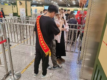 此次活动不仅为游客提供了便利,也展现了地铁志愿者的良好形象和无私奉献精神,同时也展现了年轻一代对社会责任的积极承担。他们的无私奉献和努力工作,让地铁交通更加顺畅,乘客体验更加舒适,用实际行动传递着温暖和关爱,让每一个来到地铁站的游客都能感受到家的温馨和城市的温度。他们通过自己的努力,让每一位游客都能享受到便捷、舒适的地铁出行体验,共同营造文明、和谐的交通环境,他们为城市的文明和幸福建设做出了积极贡献。