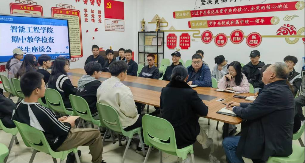 为了进一步了解学生的思想动态和学习状况,收集学生对开学以来教育教学、教学管理等方面的意见和建议,智能工程学院于2024年10月8日下午在主教414会议室召开期中教学检查学生座谈会。学院领导及各班级学生代表参加了此次会议。
