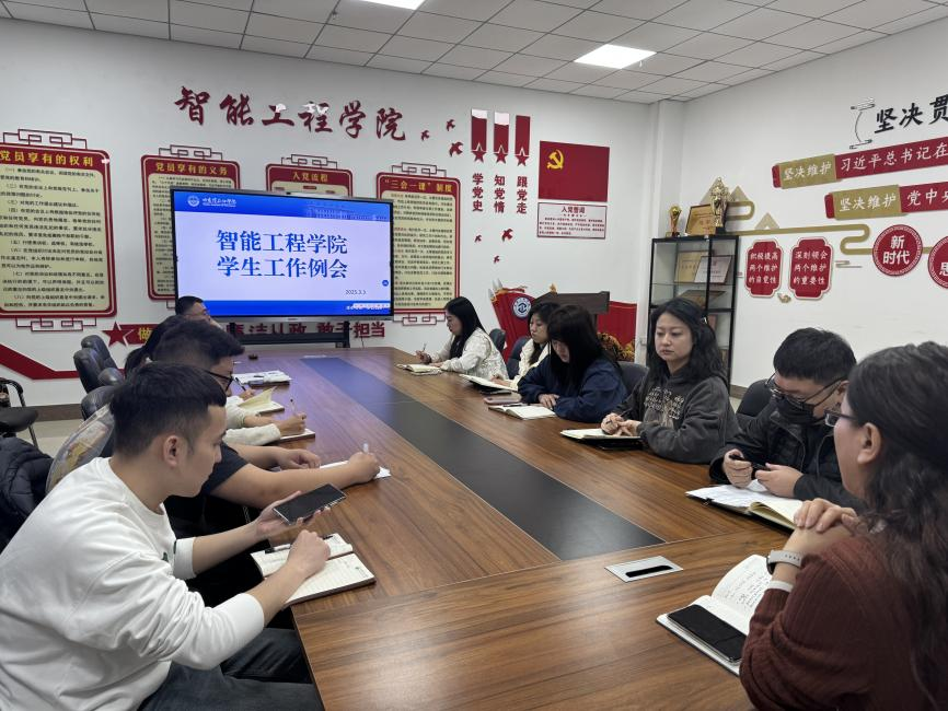 为加强我院辅导员队伍建设,提升学生管理工作质量,助力学生全方面发展,同时,为进一步推动我院优良学风的建设,引导学生树立正确的价值观和行为规范。智能工程学院于2025年3月3日在第一教学楼419召开学生工作例会。本次会议由智能工程学院党总支吴东爽书记主持,智能工程学院全体辅导员参加了本次会议。