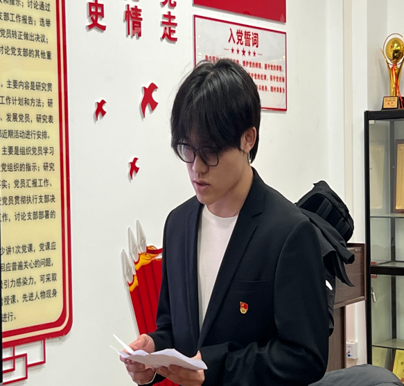 会上,学生党支部书记吕博萱针对2024年学生支部工作从思想建设、组织建设、实践活动等方面做出全面的总结,在肯定成绩的同时也指出了工作中的问题和不足,并且针对存在的问题做出改进措施,在开展批评与自我批评环节要求全体党员秉持实事求是的态度,深入剖析自身问题,共同营造积极健康的党内氛围。随后,学生党员依次发言,结合大学生的学习与生活实践,从理论学习,党性修养,服务同学等多个维度深刻开展批评与自我批评。