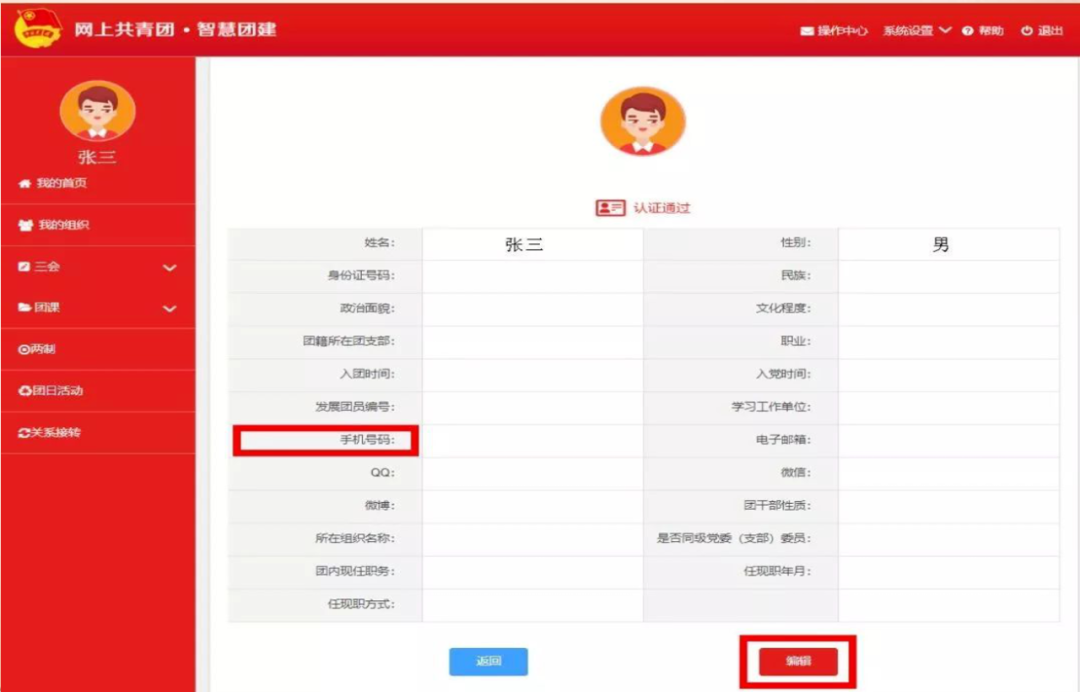 3.检查并完善个人信息,手机号码为必填,若号码有变动,请及时更改。【注】:若信息错误或有改动,点击编辑并进行改动。