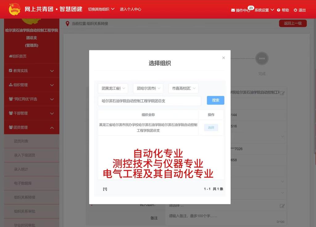 【注】团组织关系转接事项可咨询学院管理员:赵佳欣15846928167(微信同号)、井树鑫 19274662512(微信同号)。备注专业姓名之后填写个人资料并完成注册。