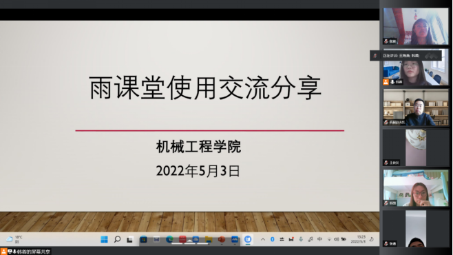 为了给广大师生提供良好的线上教学环境,给教师与学生提供完整的教学过程、个性化材料、自动任务提醒等,让学生能够积极并充分的融入课堂,同时也为更好地结合线上线下的教学方式。机械工程学院于2022年5月3日13:00采用线上方式开展了雨课堂使用交流分享会。