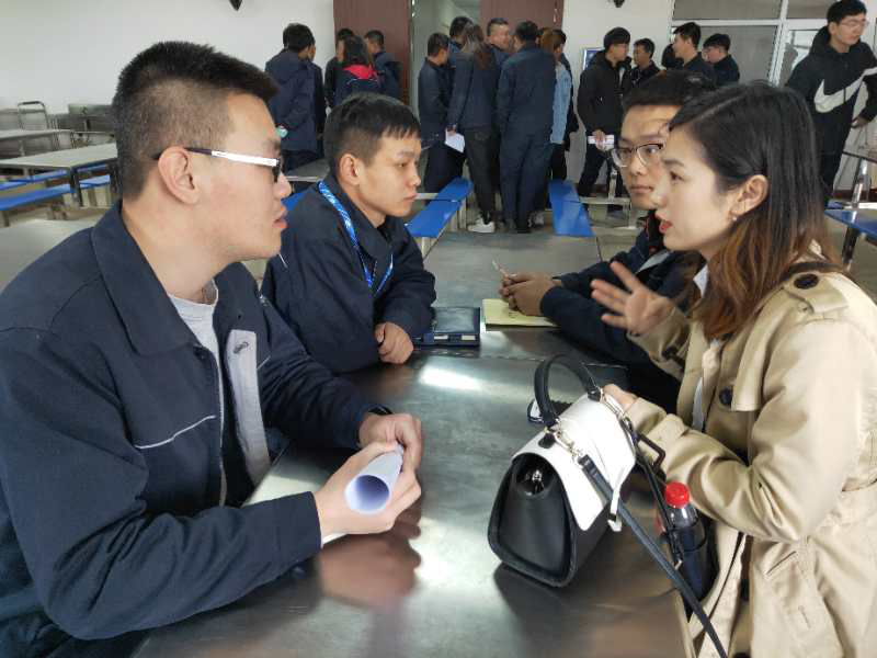 在企业开展校、企导师与定向班学生交流活动中,王妍玮院长代表学院亲切探望了在新和成进行毕业实习的机械学院学生,同时为定向班学生在实习过程中得到企业高度认可及出色地表现深感自豪,王院长鼓励同学们要努力拼搏,奋发向上。之后由机械学院韩蓉副院长为定向班学生及企业导师带来“金沙检测线路js69毕业设计流程及论文结构讲解”。会后,指导教师代表王磊及贾炜坤两位老师与学生对毕业(设计)论文撰写内容、结构、进程及存在的问题等进行交流。
