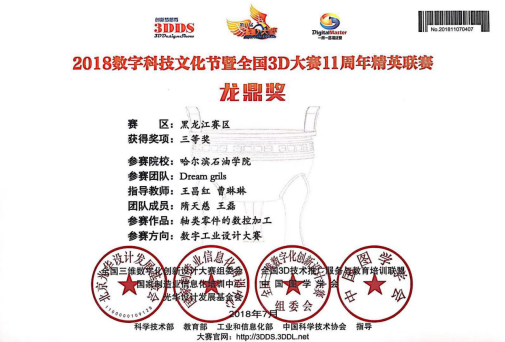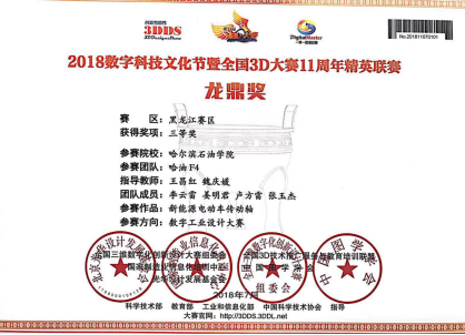 近日,全国3D设计大赛11周年精英联赛经过紧张的评选终于落下帷幕,来自全国近百所高校参加评选。全国3D大赛自2008年举办以来便受到各地方、高校和企业的重视,赛事规模稳步扩大,初赛参赛人数累积突破700万人。此次比赛,我院共斩获精英联赛黑龙江赛区5项奖项,其中二等奖1项、三等奖4项。