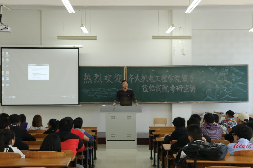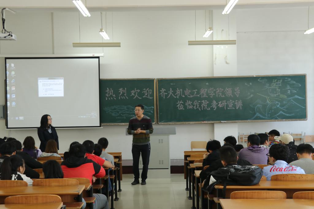 为了更好地促进考研工作,2018年9月20日上午,齐齐哈尔大学机电工程学院副院长刘尚,院办主任夏金海应邀在金沙官网主教学楼307教室做了2019年考研政策宣讲。