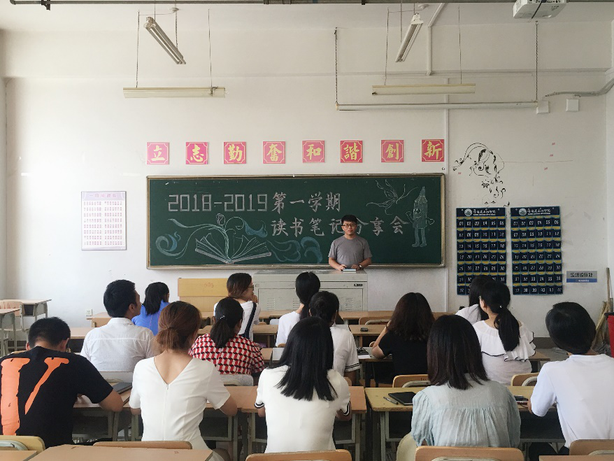 为提升校园文化氛围,激发高校教师读书的兴趣,让每一个人都想读书、爱读书、会读书,营造良好学习习惯的校园环境,以及加强教师的自主学习能力,从而养成热爱书籍,博览群书的好习惯,获取真知,树立理想,提高教师的文学素养。机械工程学院暑期布置教师进行读书笔记活动,全体机械工程学院教师于2018年8月21日下午13点30分主教学楼506进行读书笔记分享活动。
