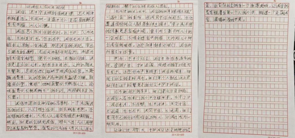 通过征文比赛,学校希望同学们能够深入思考诚信的内涵,将其内化于心、外化于行。同时,本次活动也为学生提供了一个展示其文学修养和写作技巧的平台,有助于全面提升学生的综合能力。最终通过线上投票决出。