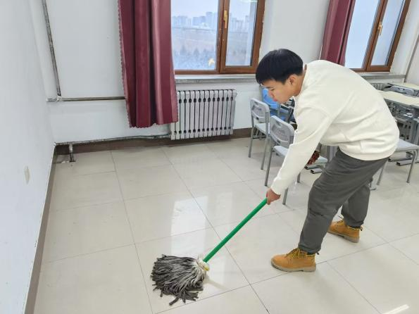 在活动期间,同学们以小组为单位,分工明确,负责摆放桌子、擦拭黑板、清扫和拖地等工作。在整个劳动过程中,同学们秉持着“团结互助,爱校如家”的理念,共同努力营造了一个整洁舒适的学术氛围。这不仅展现了智能工程学院同学们出色的劳动技能,也彰显了他们团结协作的精神风貌。