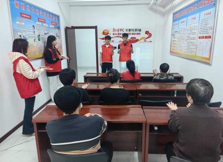 活动伊始,志愿者们通过通俗易懂的语言,向老人们讲解了网上挂号的优势,如避免线下长时间排队、可提前选择心仪专家等,让老人们对网上挂号有了初步认识。随后,志愿者们一对一指导老人进行操作,从下载医院官方App或进入微信小程序,到注册账号、实名认证,再到选择科室、医生和就诊时间,每一个步骤都耐心演示、详细讲解。除了实操教学,志愿者们还为老人们整理了常见医院的挂号平台信息和操作指南手册,方便老人随时查阅。同时,建立了长期帮扶微信群,承诺为老人提供后续的线上咨询和帮助。另外,志愿者们还为老人带来了精心编排的手语操。老人们纷纷被志愿者们的热情所感染,跟着志愿者们一起来学习手指操,小小的活动室里充满了欢声笑语。通过手语操学习,不仅锻炼了老人们的肢体协调性,也让他们感受到了无声语言的魅力。