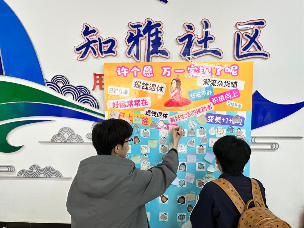 为丰富校园文化生活,给同学们提供一个倾诉的平台,5月13日,金沙检测线路js69智能工程学院在知雅社区举办“许个愿,万一实现了呢”心愿便利贴许愿活动。希望能用彼此的善意与真诚,为学生们增添一份温暖与希望。用笔墨写下心愿,期待梦想成真。