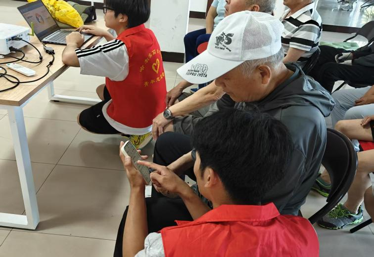 活动伊始,志愿者们来到军安社区进行志愿服务活动,与军安社区的老人们开展丰富的如反诈知识宣传,网上医疗知识普及,手指操教学等活动。在反诈知识宣传中,志愿者们声情并茂的去讲述防诈骗的现实案例已经教老人们如何预防老年人群体中的反诈骗活动,在宣传期间,志愿者们帮助老人们下载了国家反诈中心,教老人如何平常在家中学到和预防诈骗。在出行宣讲方面,志愿者们深知大多老人独守在家出行不便,志愿者们耐心细致地一对一,点对点教老人如何使用高德地图等方便快捷的手机导航软件,为老年人出行遇到的问题提供了更好的解决方案。在医疗方面,现代的医疗大多都是网上挂号,老年人挂起号来极为不便,志愿者们特地围绕军安社区查找了附近的几个较为权威的医院,并通过线上挂号一步步为老年人讲解挂号流程,为老人去医院看病解决了实质性的困难。另外,志愿者们还和老人们一起去做手指操保健活动,营造出一种积极和谐的氛围。