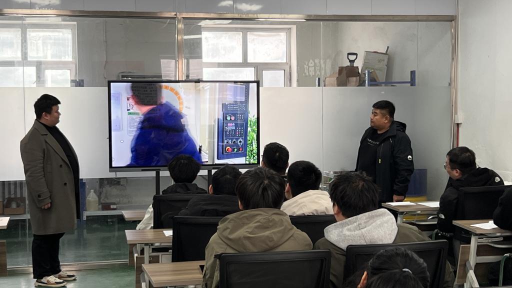 在工作人员的引导下,同学们先是来到了教室做了一个简单的小测试,然后四人一组进行了解数控机器,工作人员详细讲解了产品的生产流程、工艺技术以及质量控制环节,同学们认真聆听,并不时提出心中的疑问,现场互动氛围热烈。