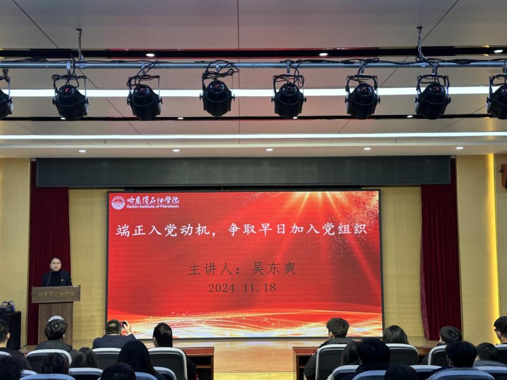 为进一步学习贯彻习近平新时代中国特色社会主义思想和党的二十届三中全会精神,加强入党积极分子的培养,提升入党积极分子的政治素养和思想觉悟,扎实做好党员发展工作。2024年11月18日,智能工程学院在主教518召开第十七期入党积极分子培训班开班式暨“端正入党动机,争取早日加入党组织”党课培训。出席本次开班式的有智能工程学院党总支书记吴东爽、学生第二党支部书记吕博萱、学生第二党支部书记戚伟同、全体入党积极分子。本次会议由学生第二党支部书记戚伟同主持。