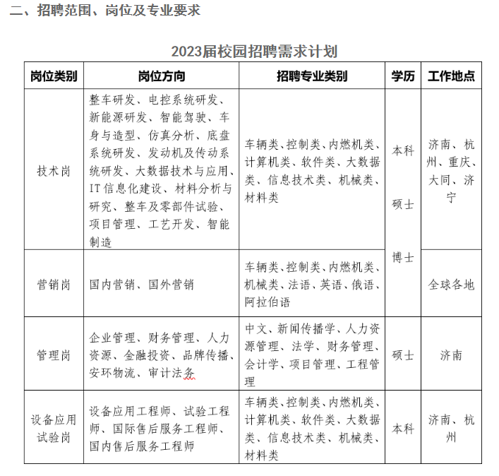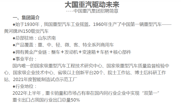 中国重汽集团2023届校园招聘简章