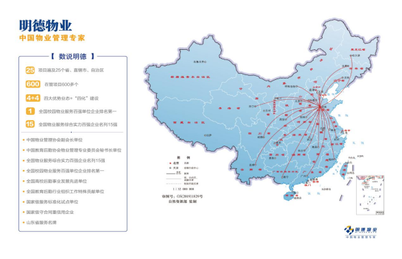 山东明德物业管理集团有限公司成立于2004年,是国家一级资质企业。经过十余年的发展,集团下设18家城市公司,服务项目遍及山东16地市及全国26个省、直辖市、自治区,在管项目600余个,是国内管理高校最多的物业管理企业,集团荣膺“全国校园物业服务百强单位(企业)第一名”,明德集团获评全国物业服务综合实力15强。