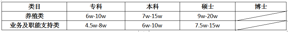 1)业务类:包括生产、市场、质检、品控等非养殖业务类岗位,如环保工程师、种植技术员、饲料/食品生产管理储备、饲料/食品化验员、食品品管员、销售员等 2)职能支持类:包括财务、人力、行政等职能类岗位 |