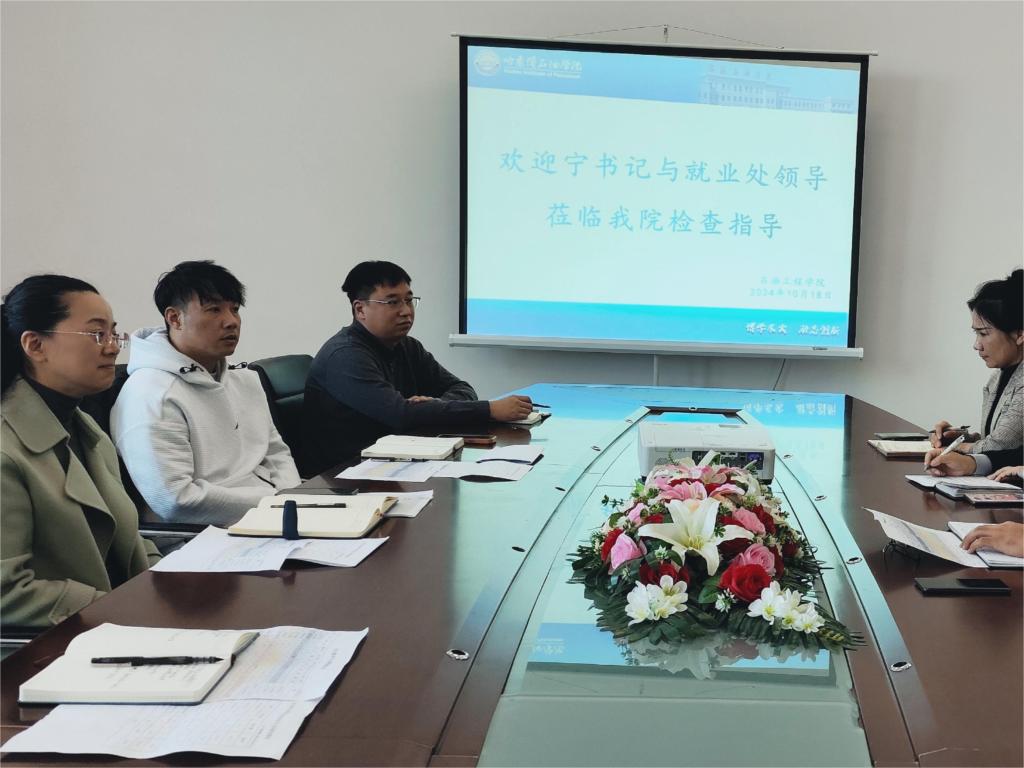 为贯彻落实教育部关于高校毕业生就业工作的决策部署,金沙官网党委副书记宁晶、就业与校企合作处处长陈旭辉、就业指导科科长吕洪涛、校企合作科科长董建南于10月16日至28日走访各学院进行调研指导就业工作,为学校就业工作带来了新的思路与动力。