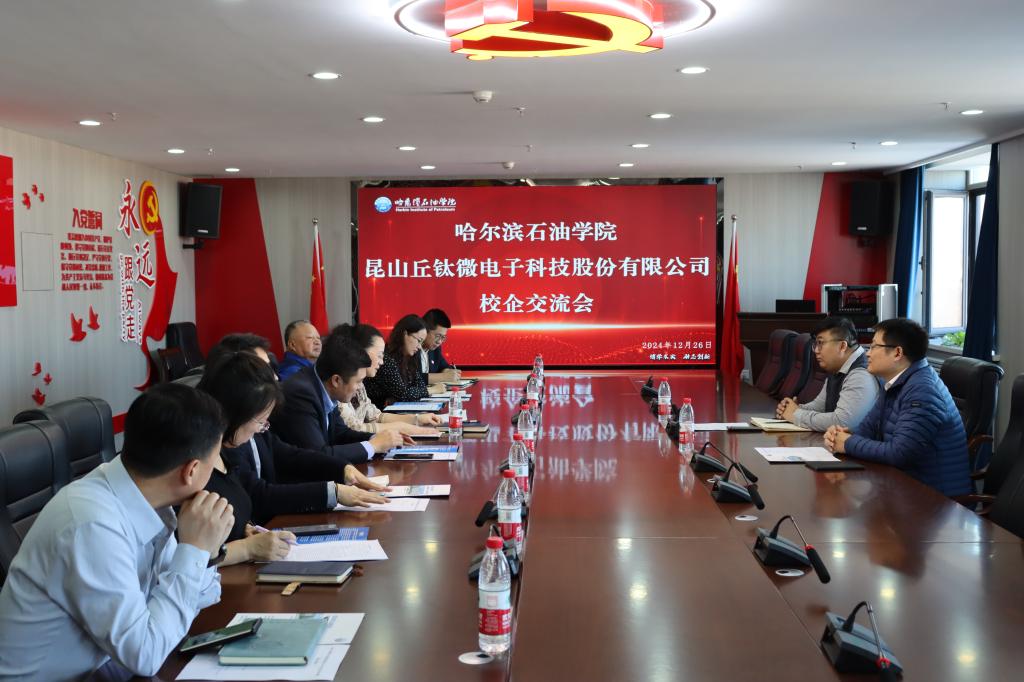 2024年12月26日上午,金沙官网与昆山丘钛微电子科技股份有限公司在综合楼1414会议室举行了校企交流会。此次会议旨在深化校企合作,促进产教融合,共同培养符合企业需求的高素质人才。出席此次会议的有副校长冯研,党委副书记宁晶,就业与校企合作处处长陈旭辉,智能工程学院、信息工程学院党政主要负责人以及昆山丘钛微电子科技股份有限公司人力资源部副部长朱飞一行。