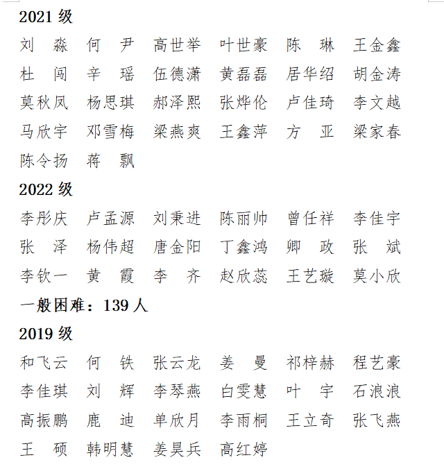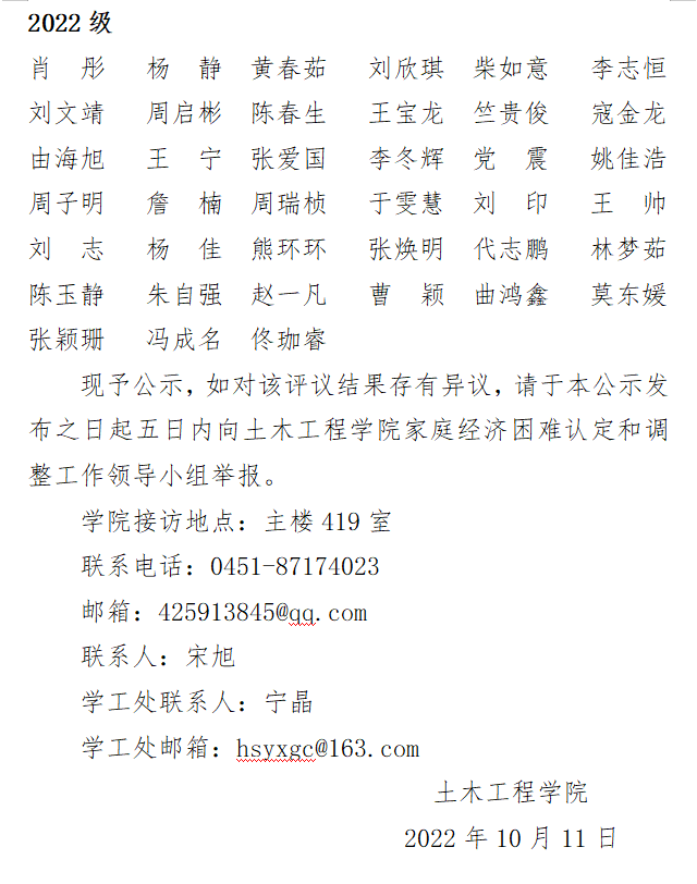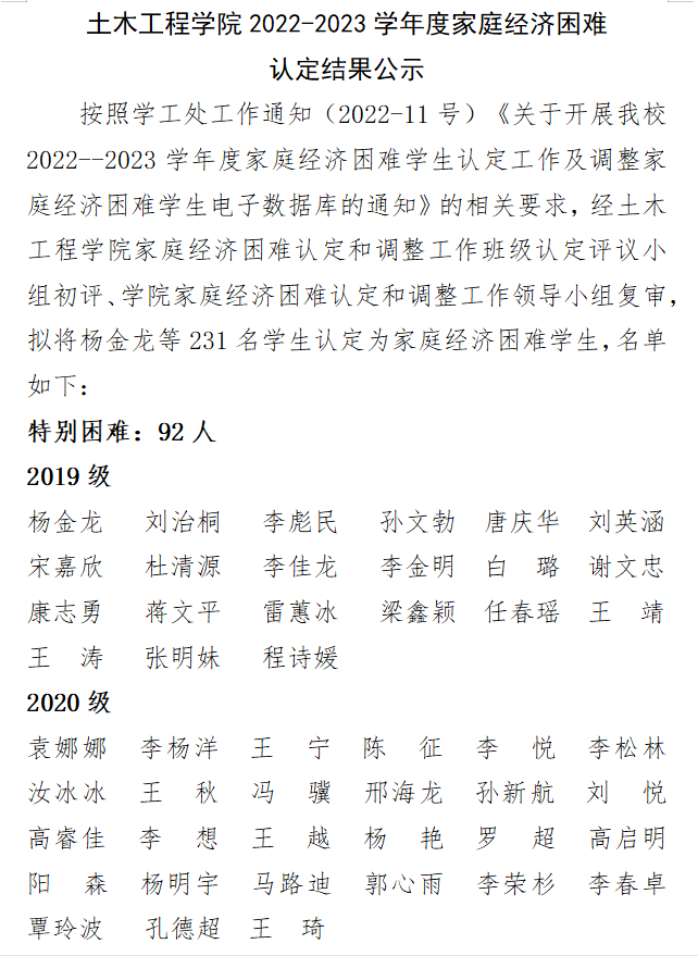 【土木推送】土木工程学院2022-2023学年度家庭经济困难认定结果公示