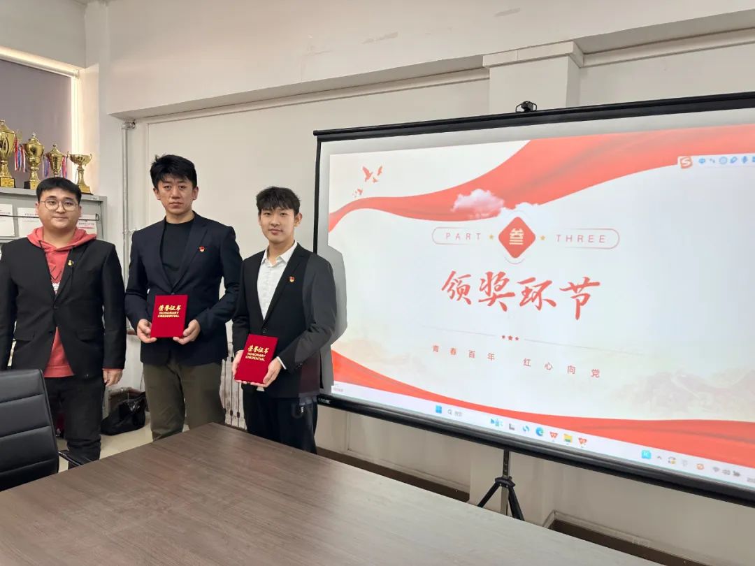比赛现场气氛热烈,党员们形成小组,通过“学习强国”平台的双人对战模式展开激烈角逐。参赛党员们全神贯注、认真答题,凭借扎实的知识储备和快速的反应能力,展现出了较高的学习水平和良好的精神风貌。经过多轮紧张和激烈的比拼,最终评选出了本次大赛的一、二、三等奖,由支部书记王铁媛和支部委员杨荣艺为获奖学生颁奖。