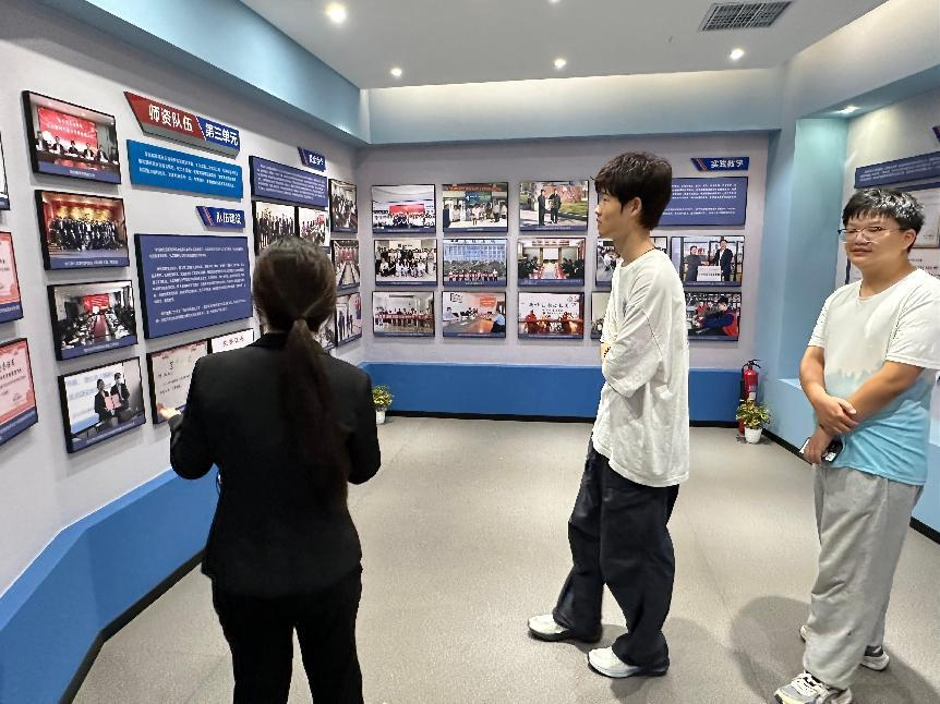 在校史的底蕴中漫步,聆听讲解员勾绘的美好校园。以时间为脉络,结合馆内陈列的珍贵校史照片、实物展品及多媒体资料,详细介绍了学校从建校初期到如今的发展变迁,包括学科建设、师资力量、科研成果、校园文化等方面的重要成就,同时向新生传播了校训“博学求实、励志创新”的重要所在。在铁人精神育人教育专区,讲解员通过讲述铁人王进喜的感人事迹、展示相关历史文物,深入解读了“爱国、创业、求实、奉献”的铁人精神,并结合学校将铁人精神融入育人全过程的实践案例,让新生深刻理解铁人精神在当代校园的传承与发展。参观过程中,新生们认真聆听讲解,不时驻足观看展品,主动向讲解员提问,现场学习氛围浓厚。