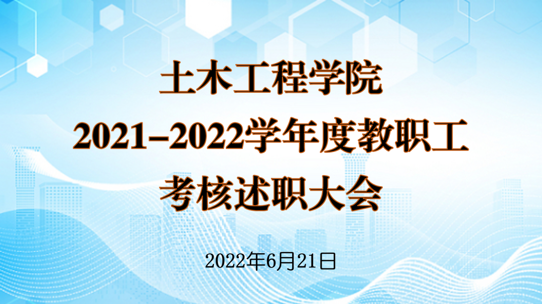 为总结工作中好的经验和做法,全面综合评价每一位教职员工,进一步推进学院各项工作提升质量,根据《金沙检测线路js69教职员工年度考核办法(试行)》的有关规定及学院工作实际,6月21日下午,土木工程学院召开2021-2022学年度教职员工考核述职大会。本次会议由院长盖晓连主持,学院领导班子、全体教师和辅导员参与述职。校长柴维斯莅临学院考核述职会场。