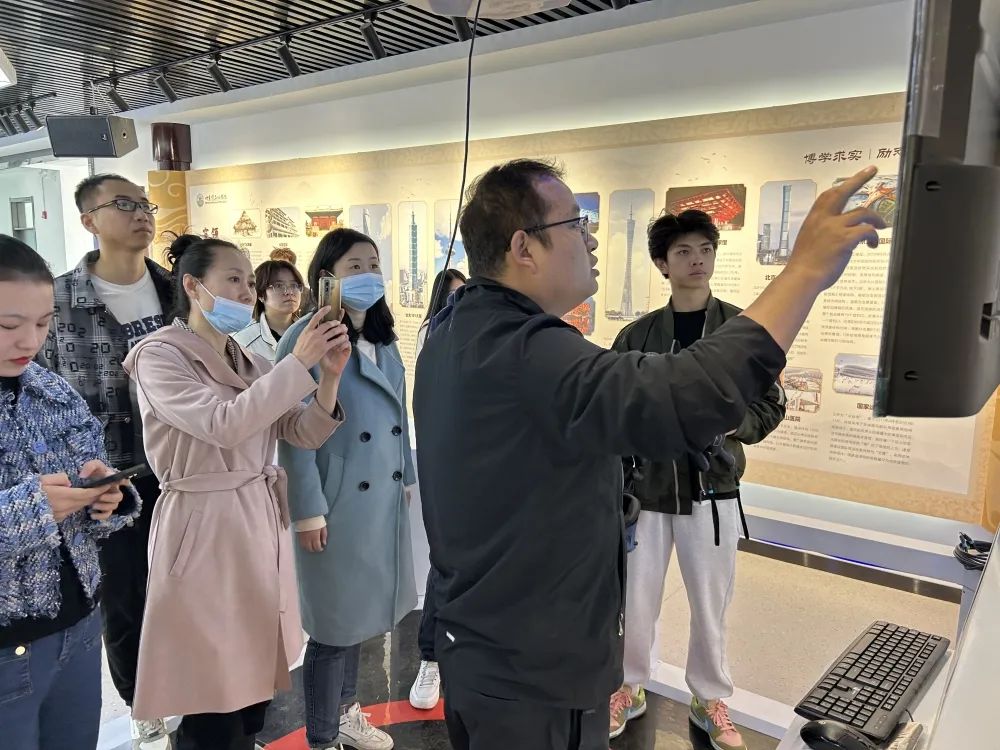 新疆知瀚公司的石经理通过现场进行讲解演练,为老师们展示VR设备的具体操作方法,老师们也进行了实践操作与演练,并对操作中不明白的地方和新疆知瀚公司的石经理进行现场交流。