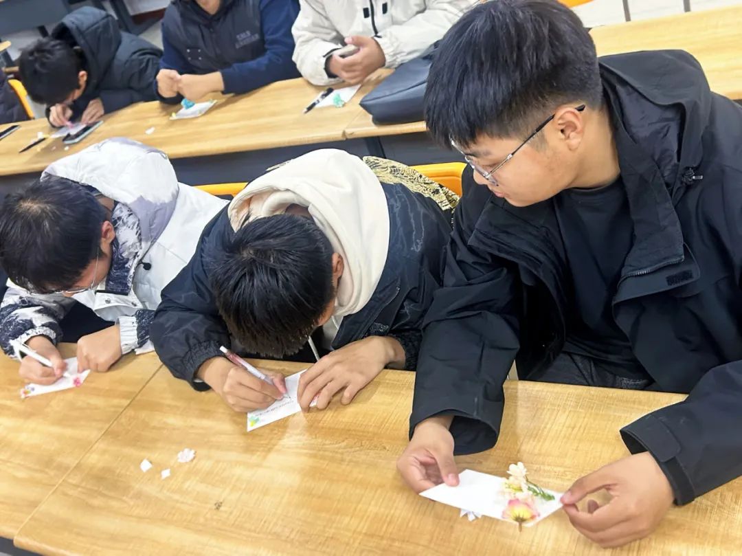 活动过程中,一张张精美的明信片逐渐成型,同学们的脸上洋溢着成就感和喜悦,通过手工帮助同学们发现生活的美好,分享创作过程中的趣事和心得,也增进了彼此间的交流与合作,为大学生活增添了一抹亮色。