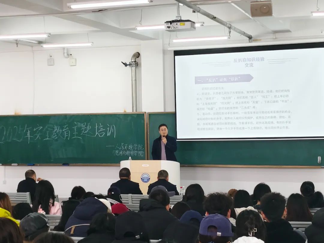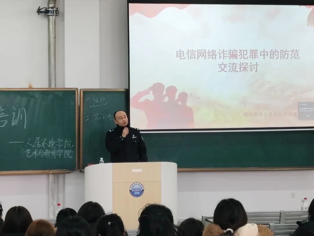 在当今社会,扒窃和电信诈骗等违法犯罪行为日益猖獗,严重威胁着人们的财产安全和社会稳定。为增强学院师生们的安全防范意识,增强自我保护能力,2025年3月7日,人居环境学院与当地警方携手合作,特别邀请哈尔滨市公安局公共交通分局刑侦二中队中队长张孟山、哈北站派出所教导员汪恒勃,举办一场别开生面的反扒反电信诈骗专题活动。