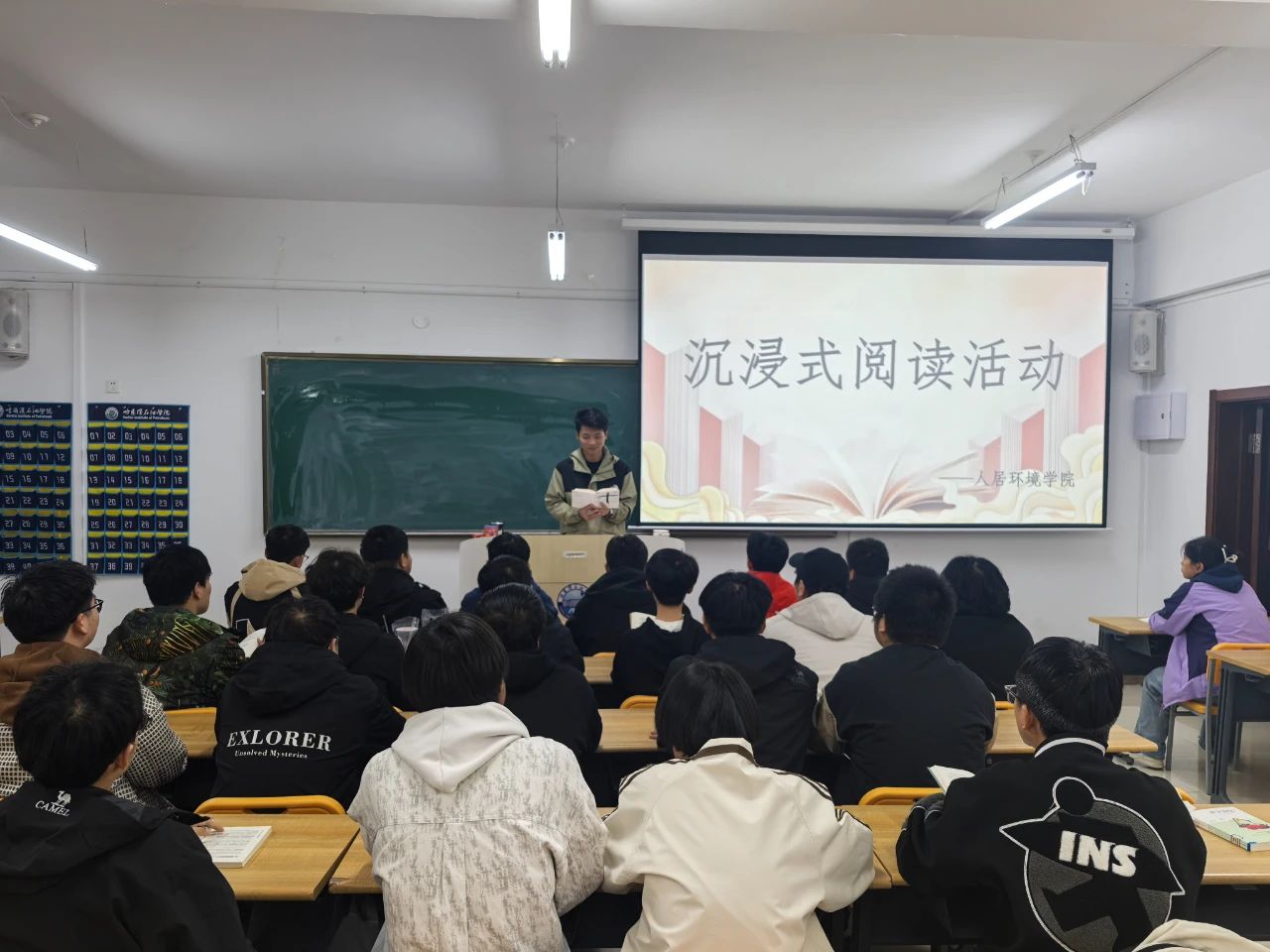 为激发学生阅读兴趣,帮助学生摆脱碎片化阅读,专注书籍内容,提高理解与思考能力。人居环境学院于2025年4月17日组织各班级在教室开展了“沉浸式阅读”活动。此次活动旨在让学生在无干扰的环境中,全身心投入阅读,品味文字魅力,感受知识力量。