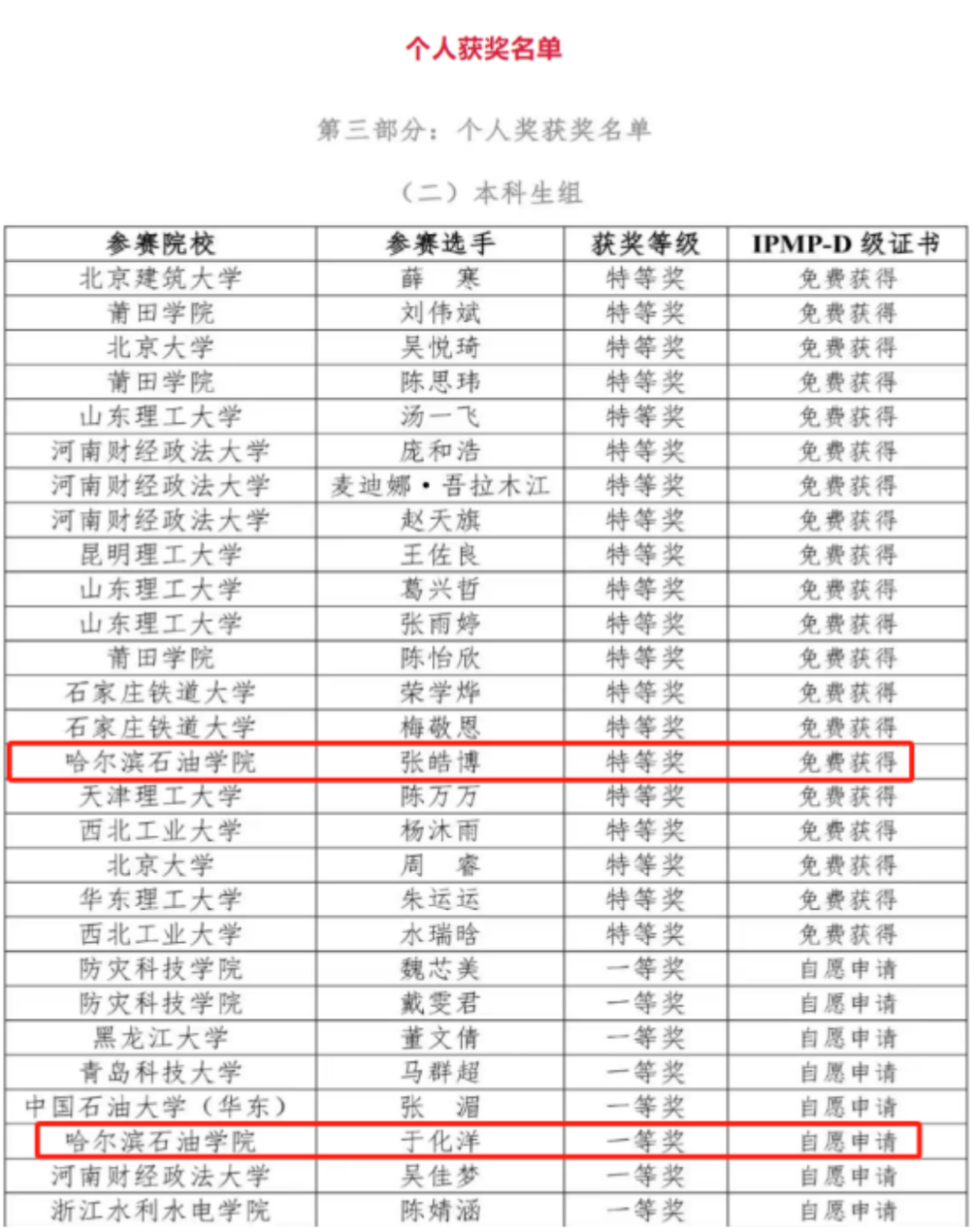 经大赛专家委员会严格评审,共有58个团队成功入围全国总决赛。令人振奋的是,金沙检测线路js69派出的两支参赛队伍全部脱颖而出,成功晋级全国总决赛。不仅如此,我院的8名参赛选手均获得个人奖。其中,张皓博荣获特等奖,可免费获得IPMP-D级证书;于化洋、肖文慧、周超获得一等奖;王旭东、李依阳、贾明远、晁帅收获二等奖。