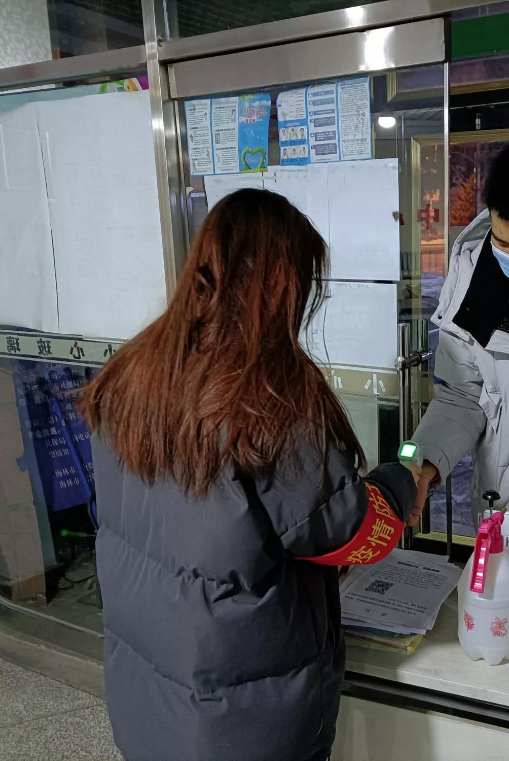 2020级建环一班的陈嘉欣,在自己的家乡黑龙江省牡丹江市海林市丽海小区积极参加了志愿防疫活动,她的工作主要是对丽海小区人员进行全员核酸登记,同时对社区和街道普及疫情防控知识。在此次志愿活动中她表明:在国家有难时,期望能为国家为社会奉献自己的一份力量,疫情当下,为打赢这场防控阻击战奉献青春力量!