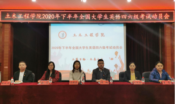 为加强学风建设,严肃考风考纪,增强学生诚信考试意识。土木工程学院于12月9日中午12点在第一教学楼518会议室召开2020年下半年全国大学生英语四、六级考试动员会。会议由学院党总支书记宋旭主持,院长盖晓连、学团办公室主任赵宇、辅导员王铁媛、王雪、胡秋实及160余名学生参加会议。